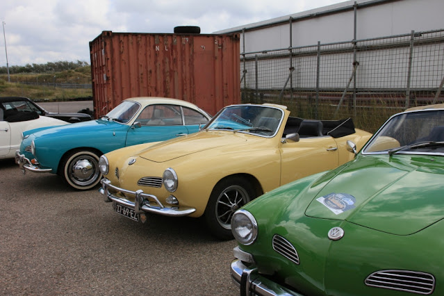 Op de foto zie je drie bijzondere Volkswagens. Ze zijn van het type Karmann Ghia. Ze werden gebouwd door Karmann met techniek van Volkswagen en het ontwerp was van het Italiaanse Ghia. Ze zien er zowel als cabriolet en als coupé prachtig uit.